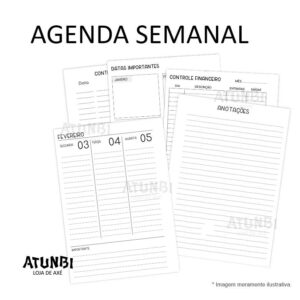Agenda Datada modelo semanal, capa e contra-capa dura e laminada, fechamento com elástico e passante, encadernação wire-o, aproximadamente 166 páginas.