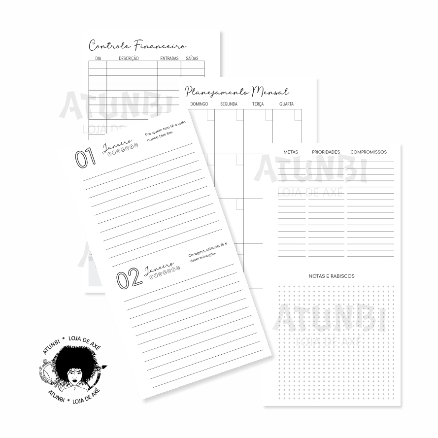 Agenda Tradicional Permanente (não datado), modelo Slim (22x11cm) e 2 dias por página, capa e contra-capa dura e laminada, fechamento com elástico e passante, encadernação wire-o.
