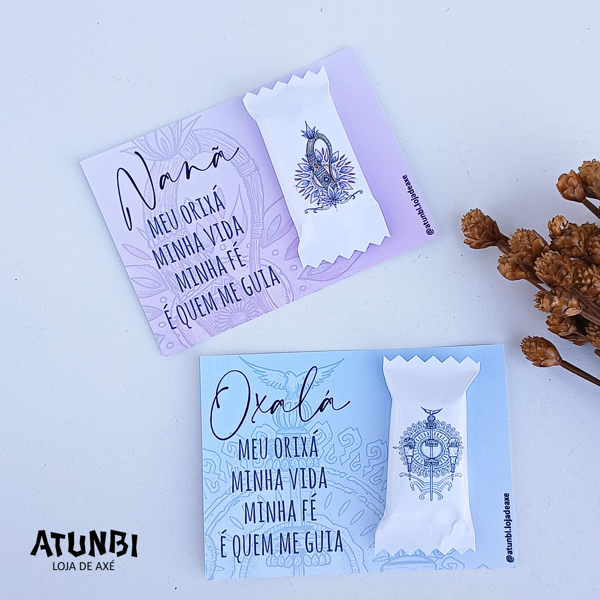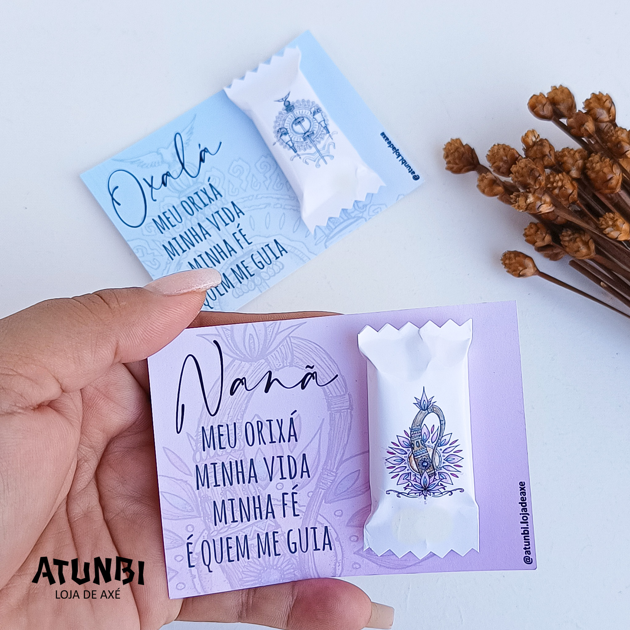 Escrita / frase / orixá/entidade / sabor da bala, conforme escolha do cliente.