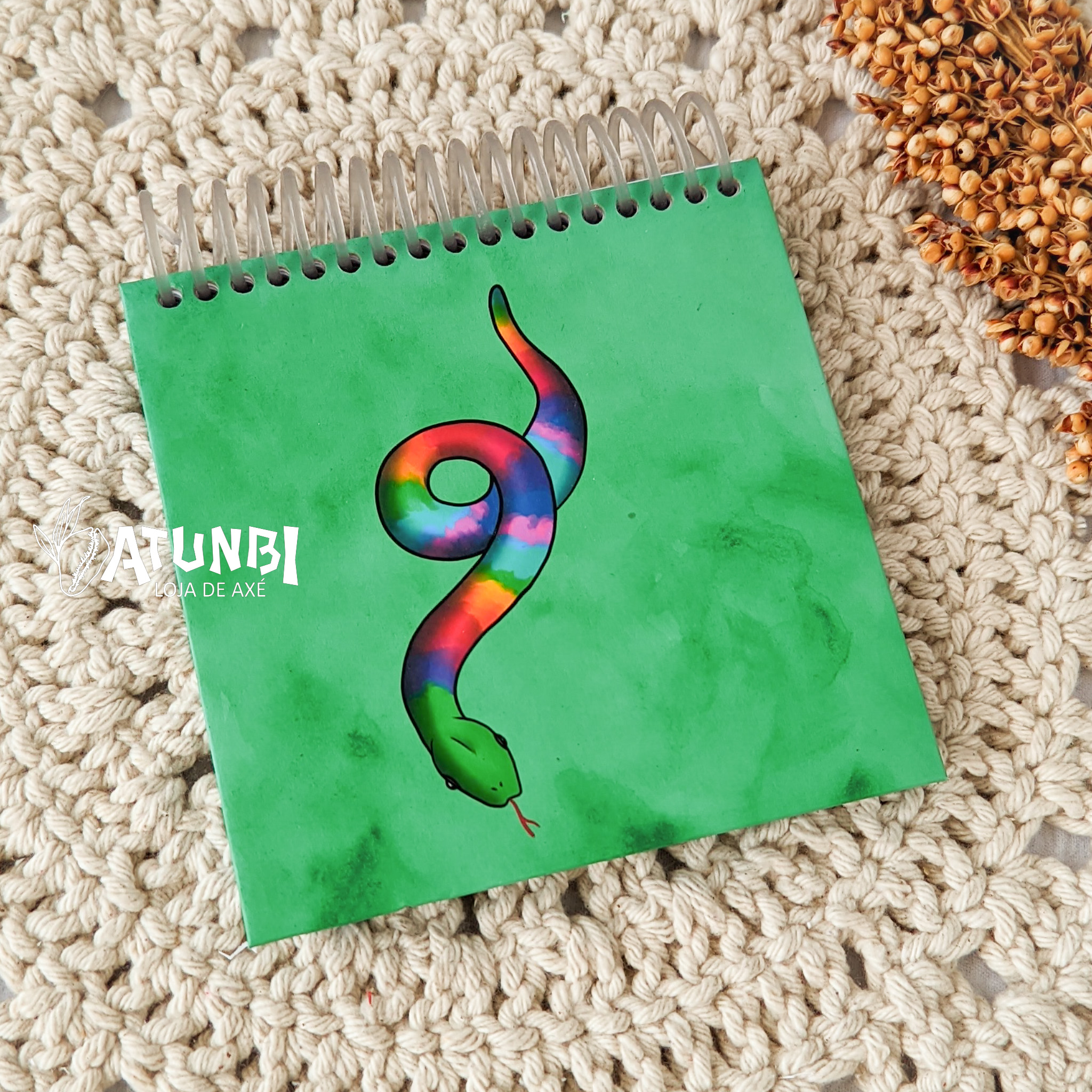 Bloco personalizado encadernado com espiral contendo 70 folhas brancas de 75g em capa e contracapa dura laminada.