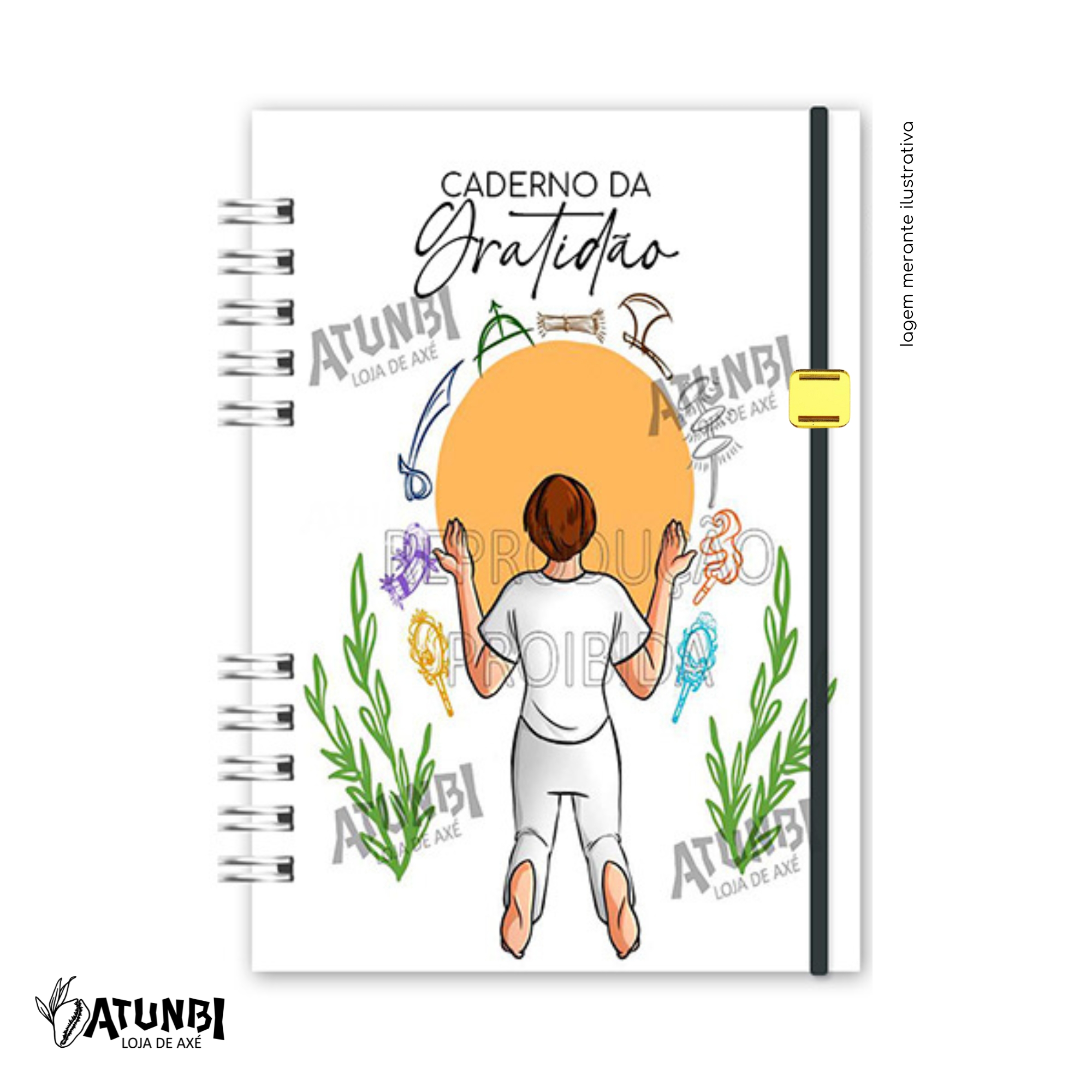 Caderno da Gratidão, impresso em papel 75g, sendo 2 dias/página, capa e contra-capa dura e laminada, fechamento com elástico e passante em acrílico, bolso canguru plástico, encadernação wire-o, totalizando 200 páginas.