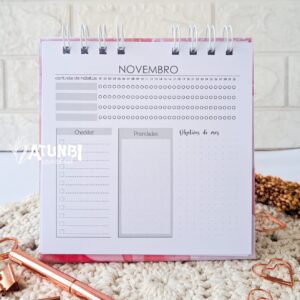 Verso: chek list, prioridades, objetivos do mês e controle de hábitos.