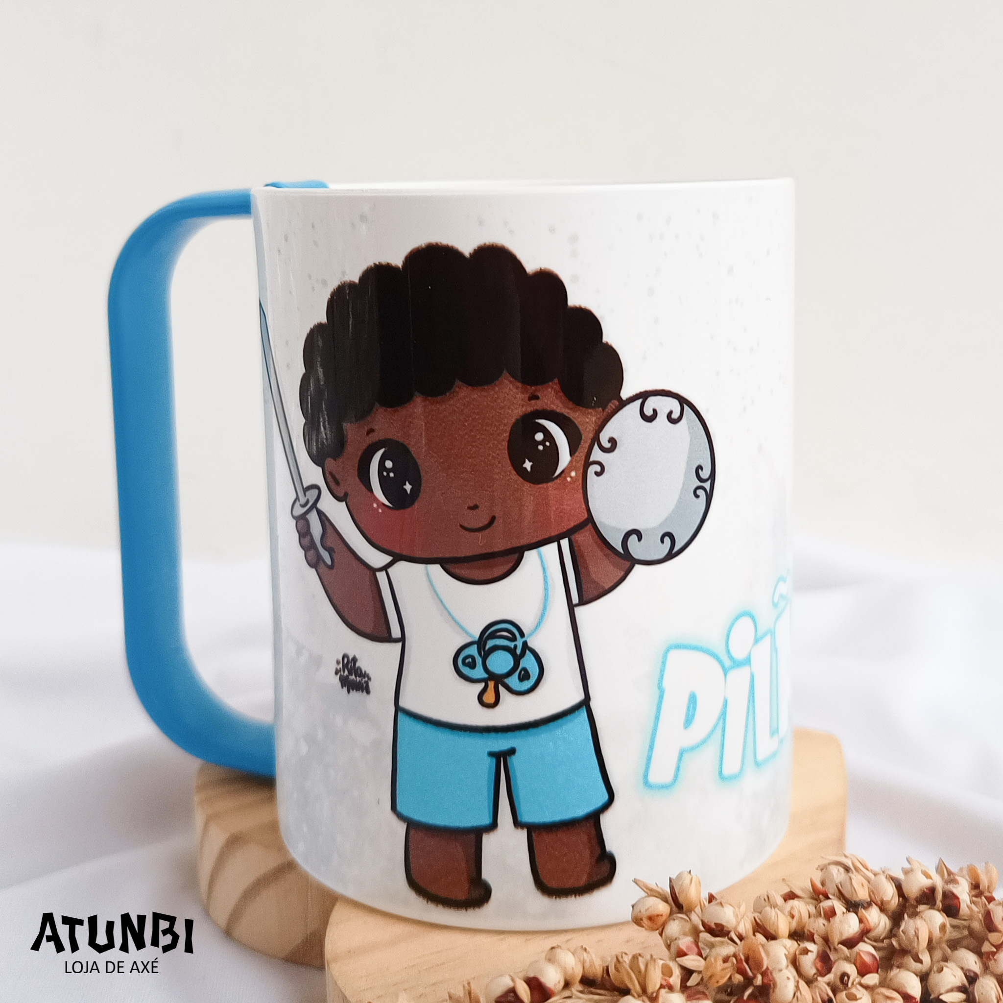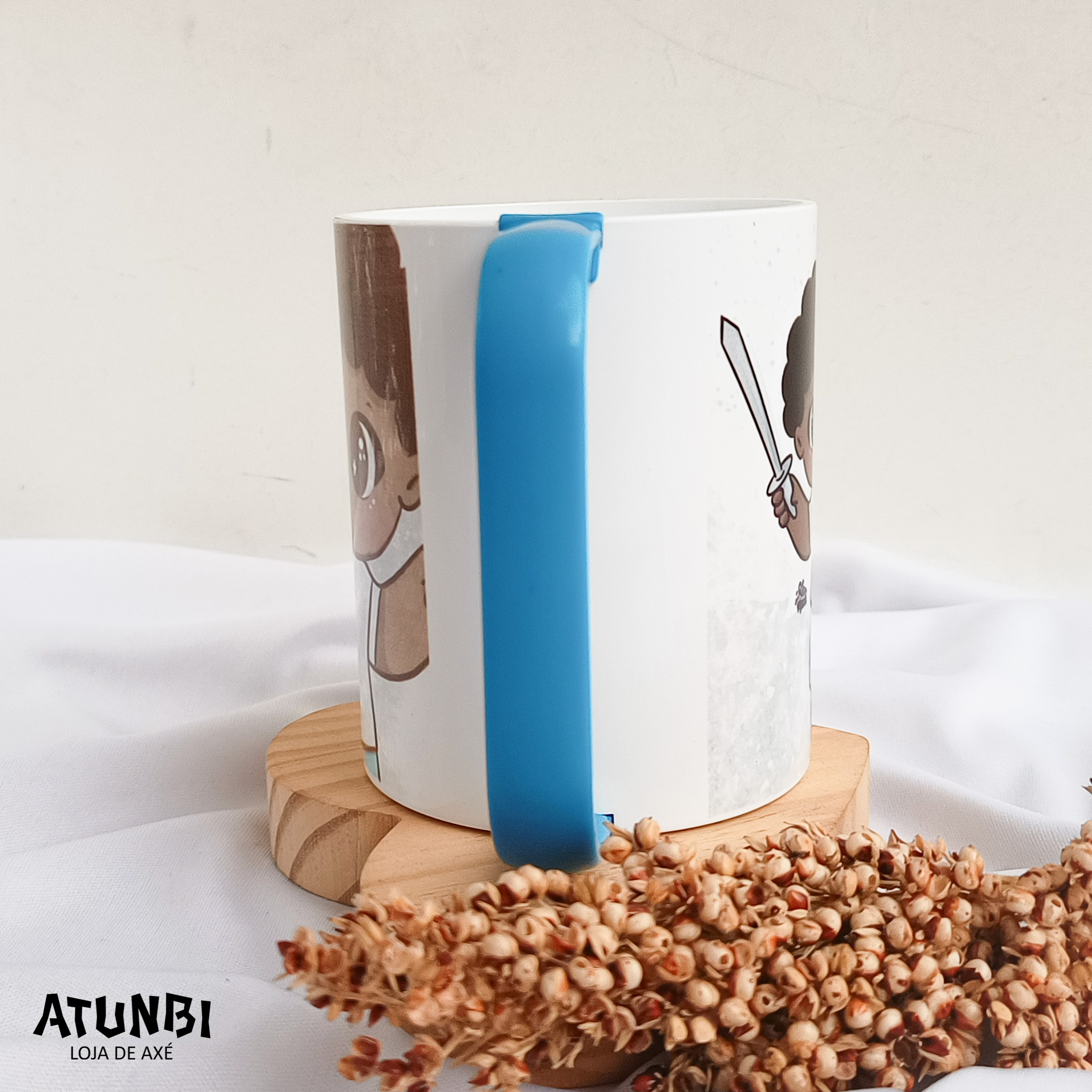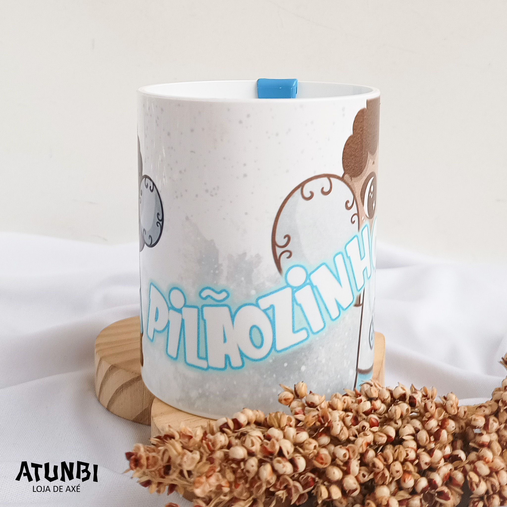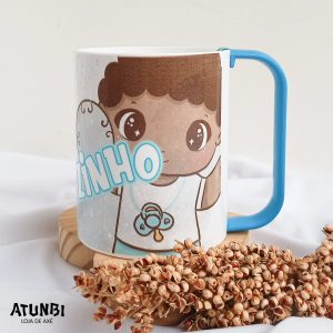 Caneca de polímero (plástico) branca 320ml, com alça click (removível), estampa sublimada em alta qualidade.