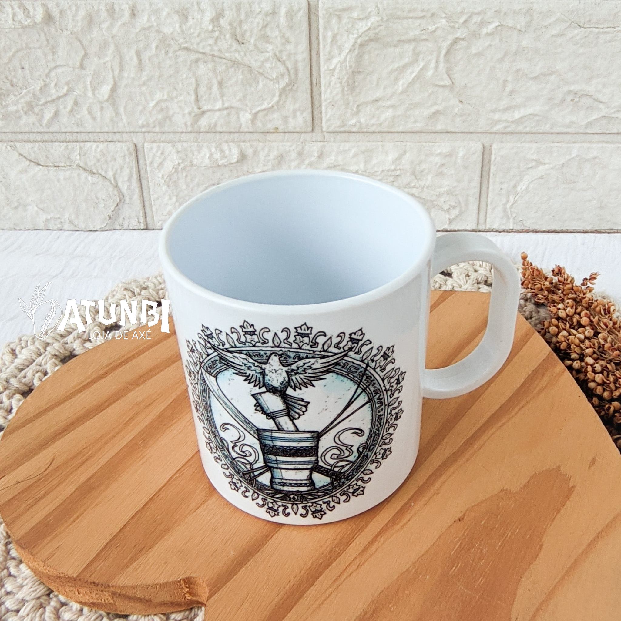 Caneca de polímero (plástico) branca personalizada (sublimada) 325ml estampada diretamente no produto,