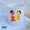 Caneca em polímero (plástico resistente) estampada (sublimada) diretamente no produto.