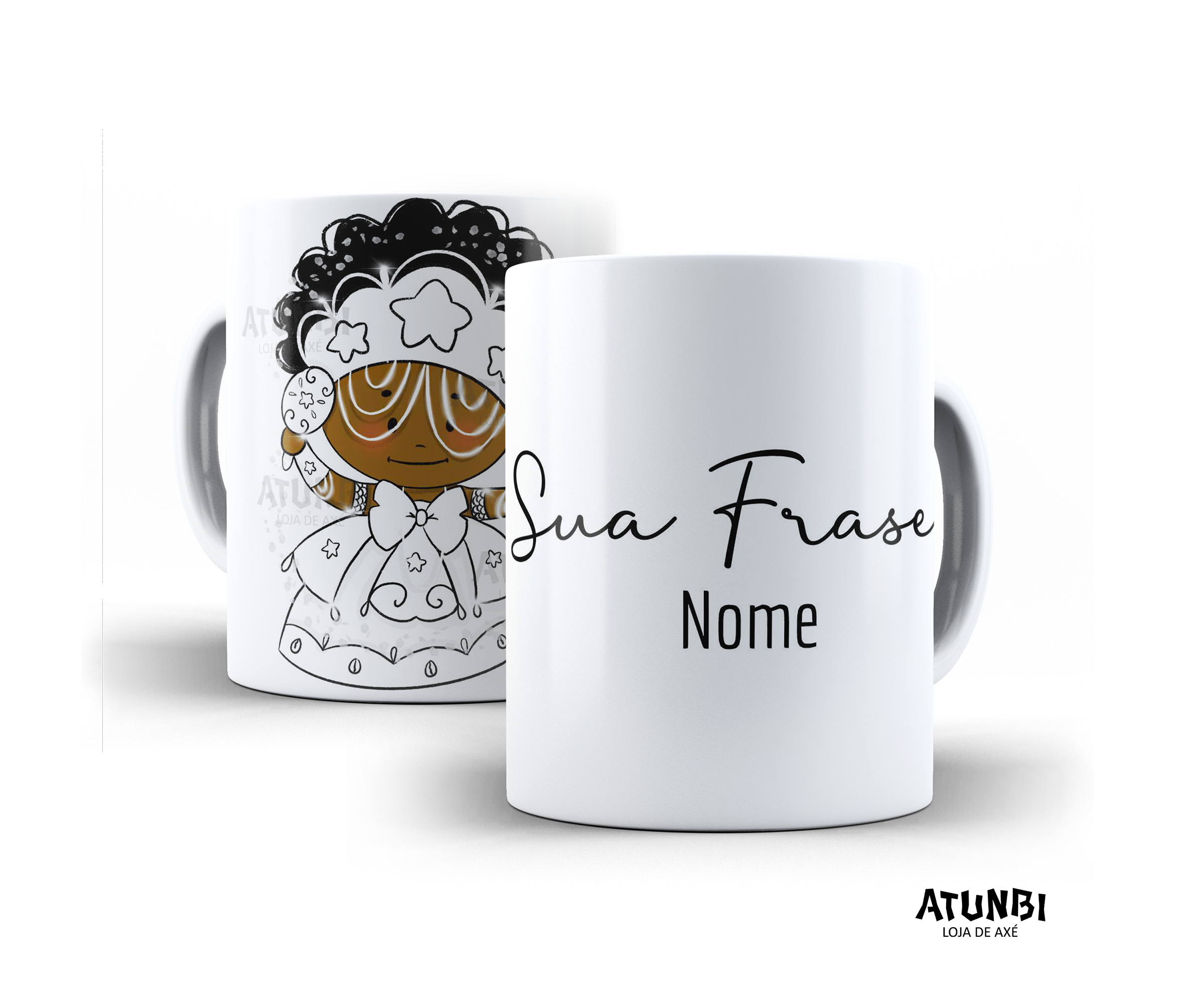 Caneca cerâmica 325ml branca estampada (sublimada) diretamente no produto.