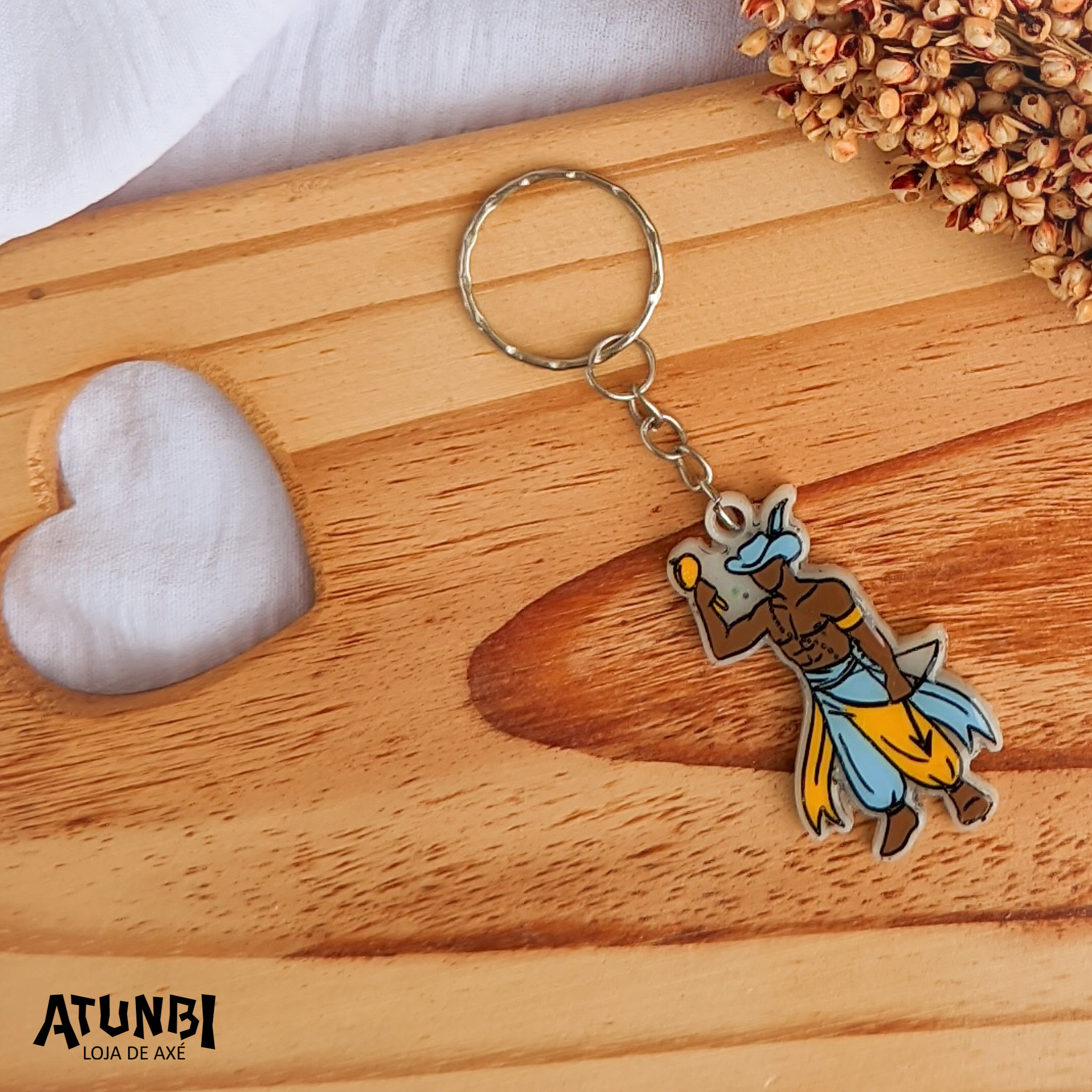 Chaveiro de resina, fechamento com corrente e argola.