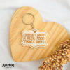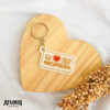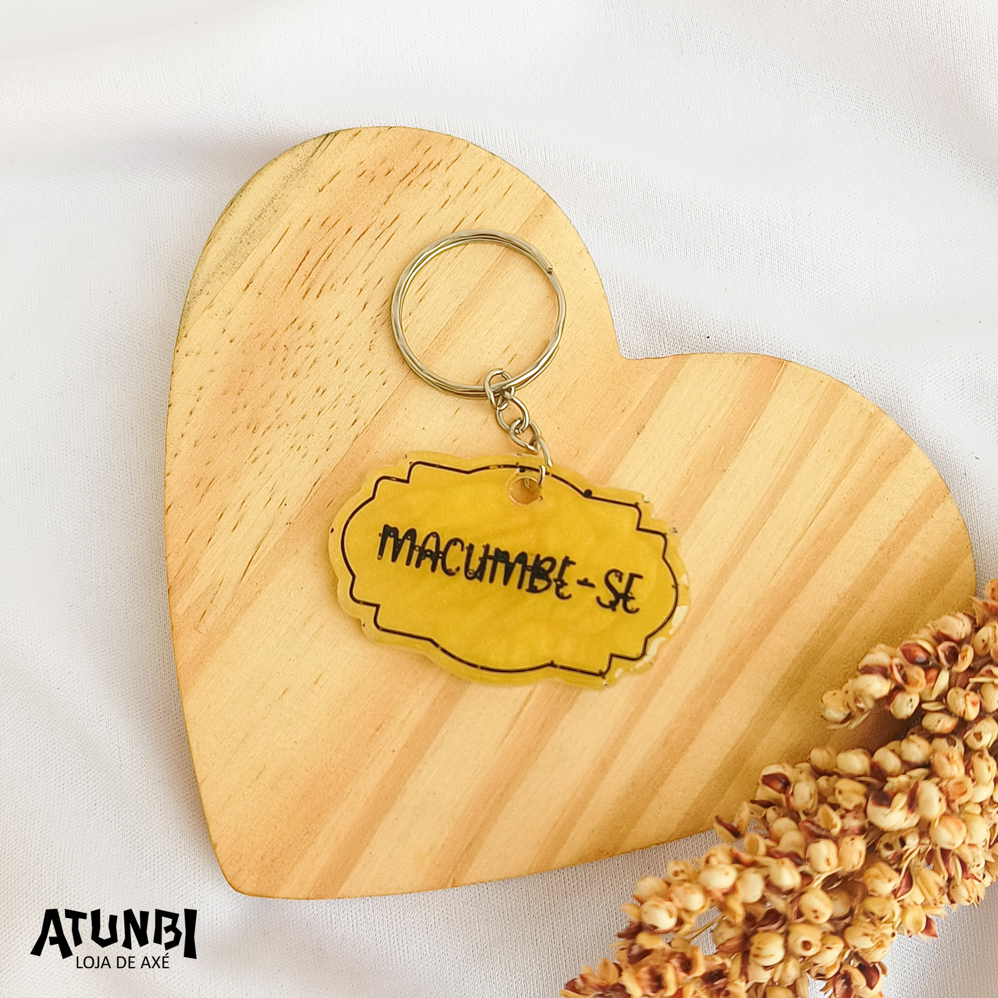 Chaveiro de resina com gravação direta, fechamento com corrente e argola.