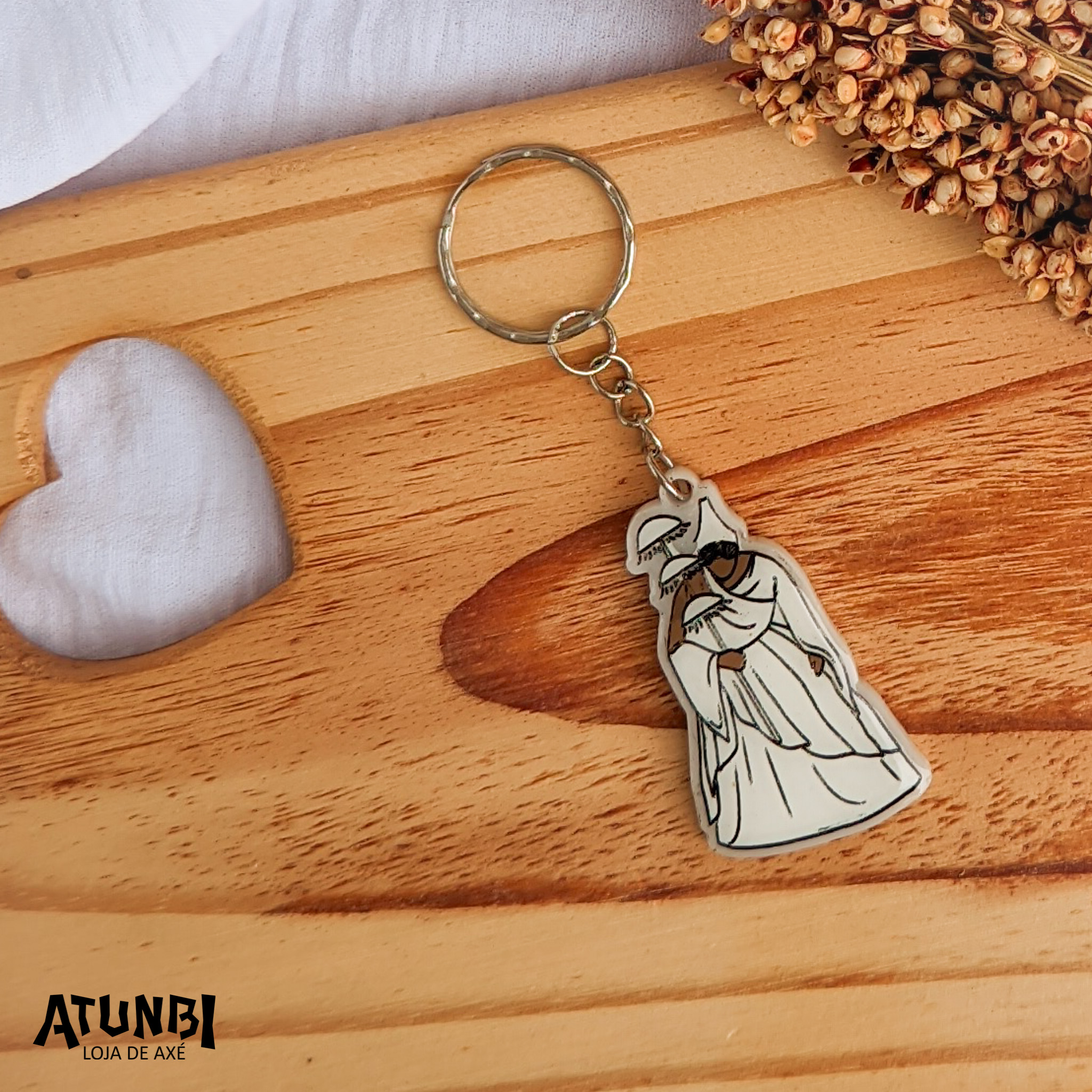 Chaveiro de resina, fechamento com corrente e argola.