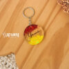 Chaveiro de resina, personalização em glitter e transparência, fechamento com corrente e argola.