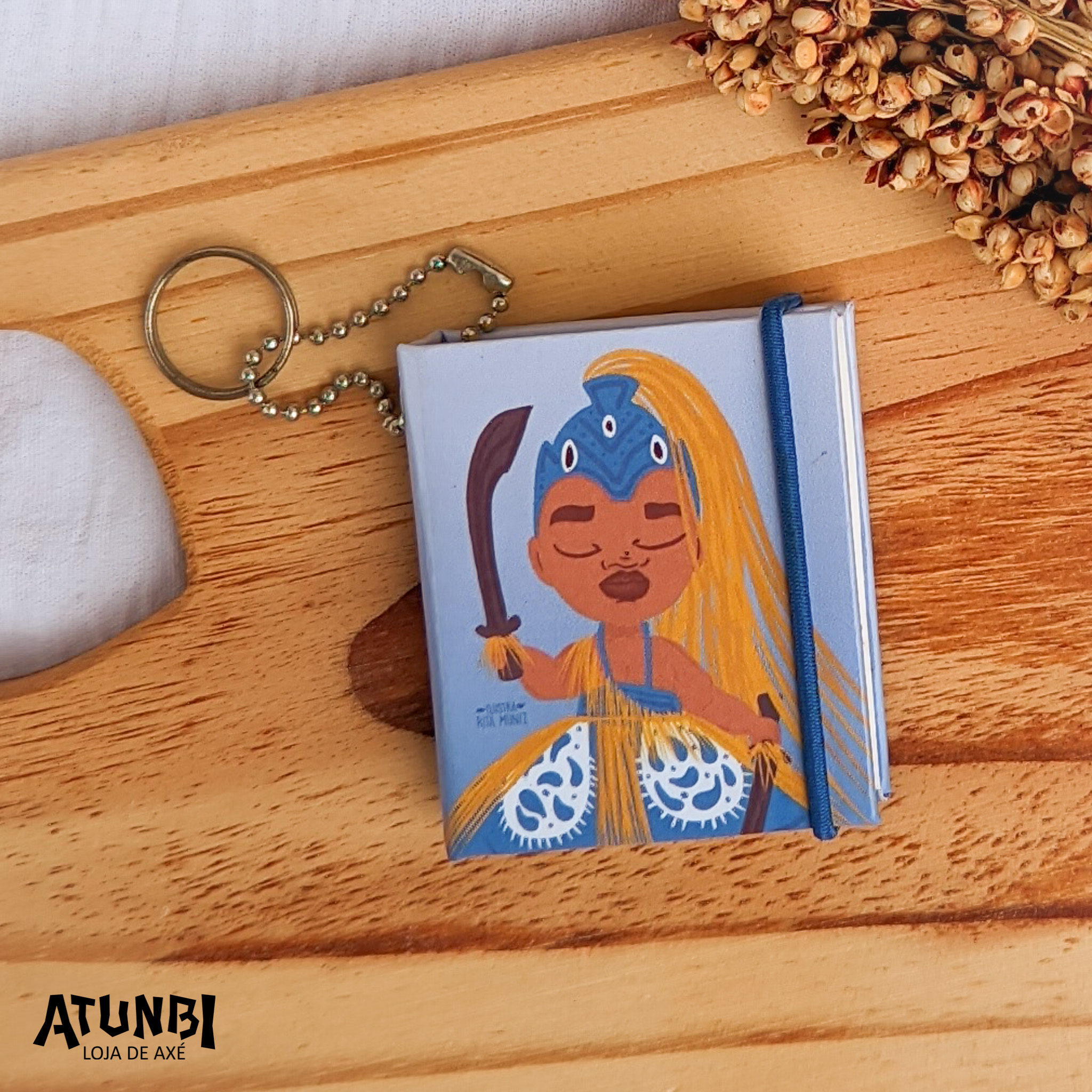 Chaveiro Post It contendo 100 folhas, em capa dura laminada personalizada, fechamento com elástico, corrente bolinha e argola.
