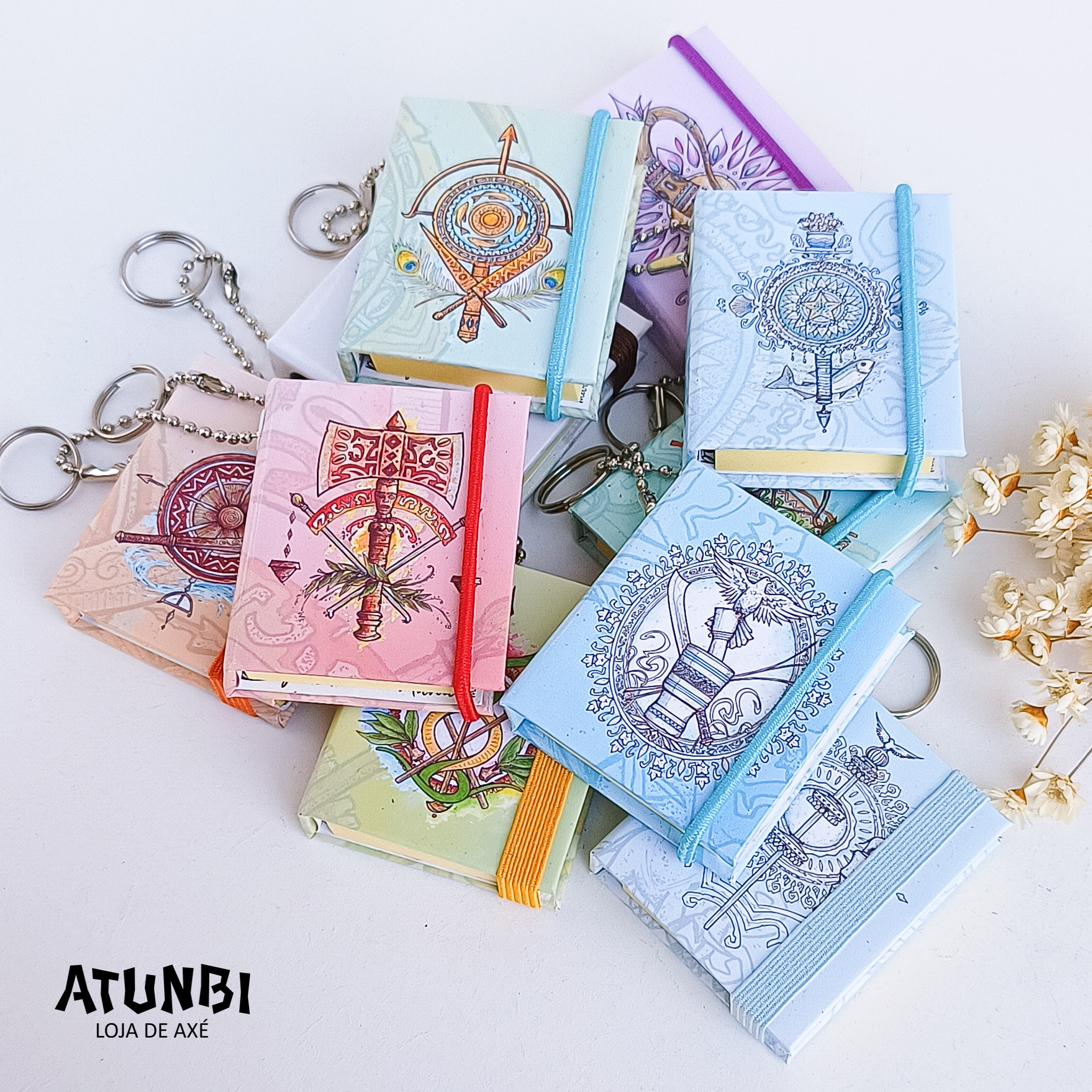 Chaveiro Post It contendo 100 folhas, em capa dura laminada personalizada, fechamento com elástico, corrente bolinha e argola.