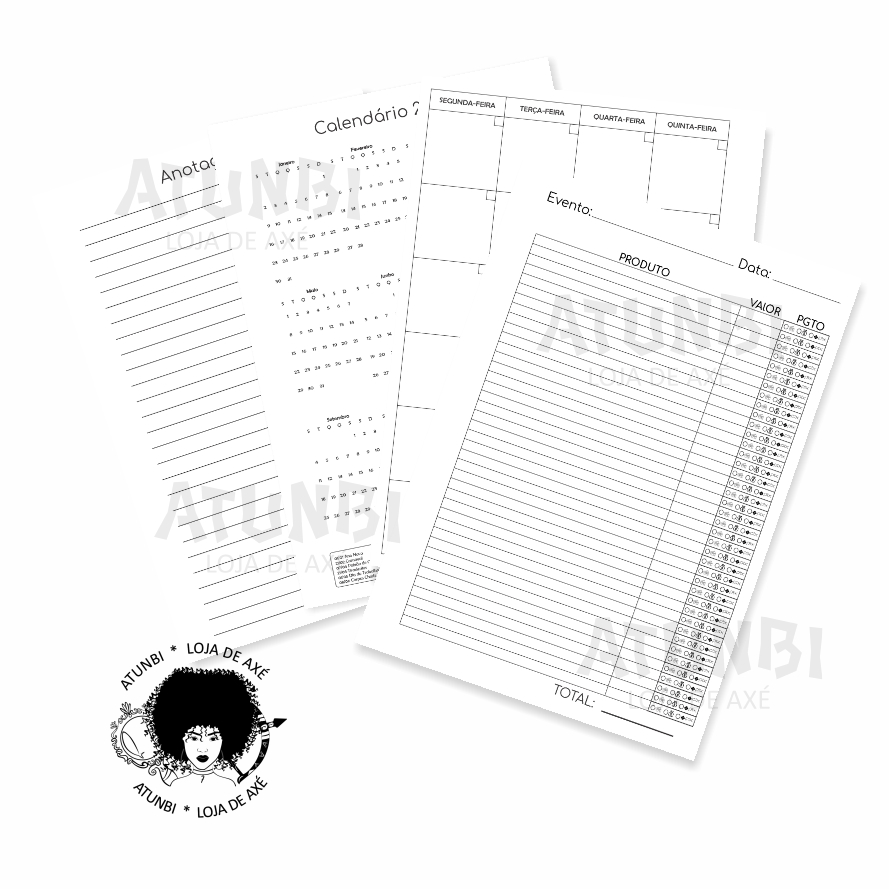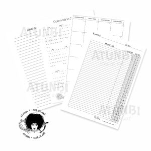 - Controle de eventos/feiras e pedidos tamanho 22x16cm, capa e contra-capa dura e laminada, fechamento com elástico e passante, bolso canguru plástico, encadernação wire-o, divisórias em papel 150g, aproximadamente 200 folhas.