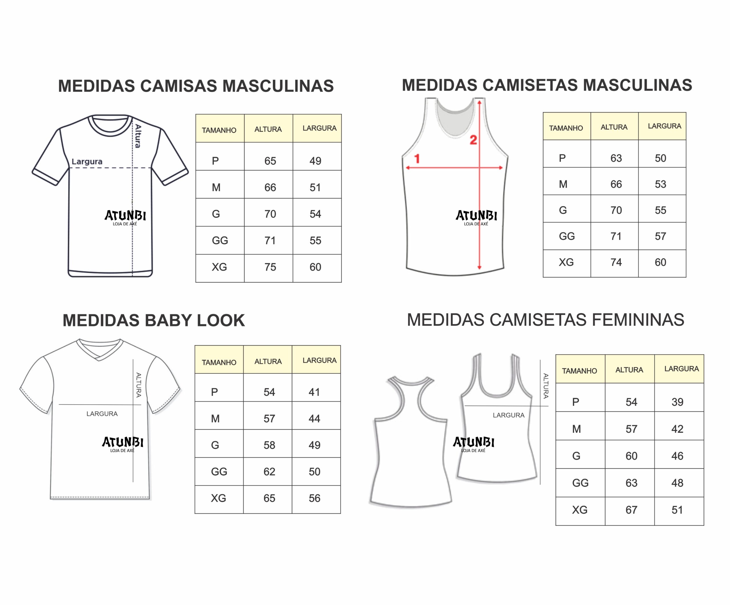Modelos: Camisa masculina e Babylook (feminina)