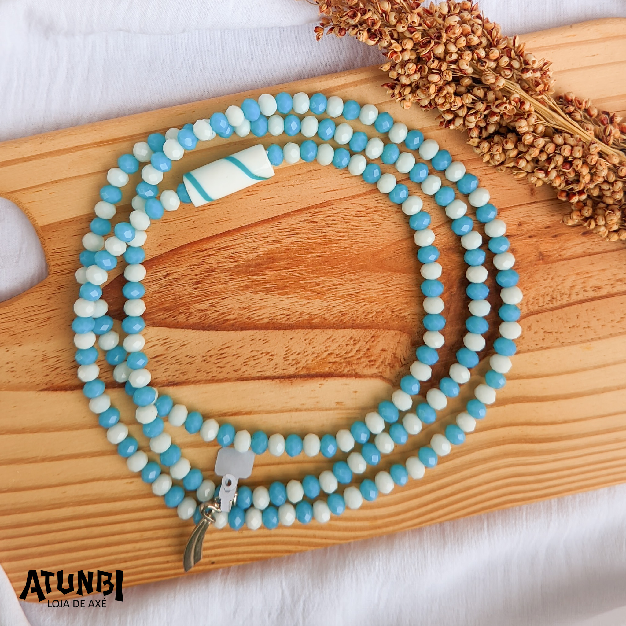 Fio de contas / Guia confeccionada em cristais 8mm, firma em murano e pingente metálico.