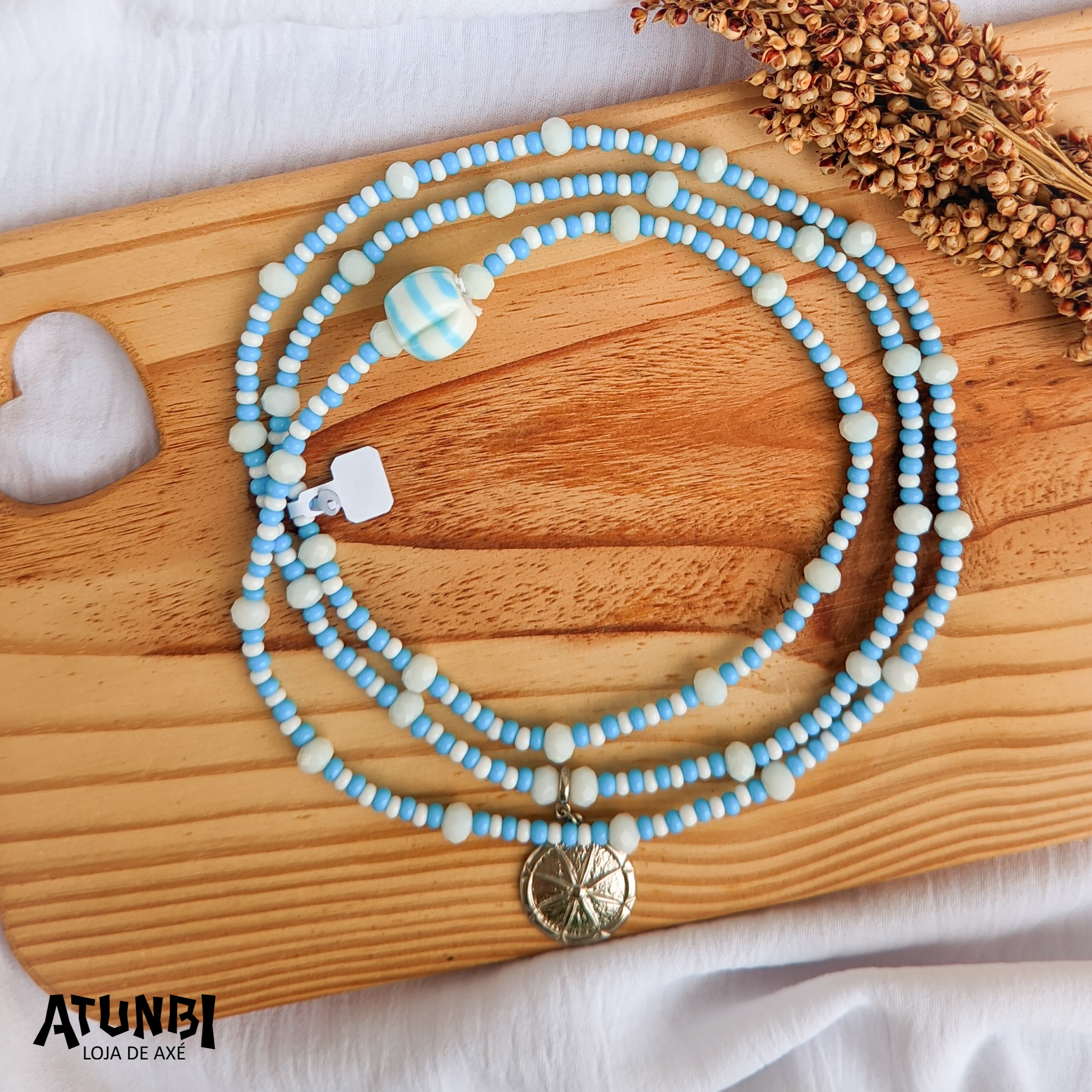 Fio de contas / Guia confeccionada em miçangas Jablonex (importada), cristal 8mm, firma em murano e pingente metálico.
