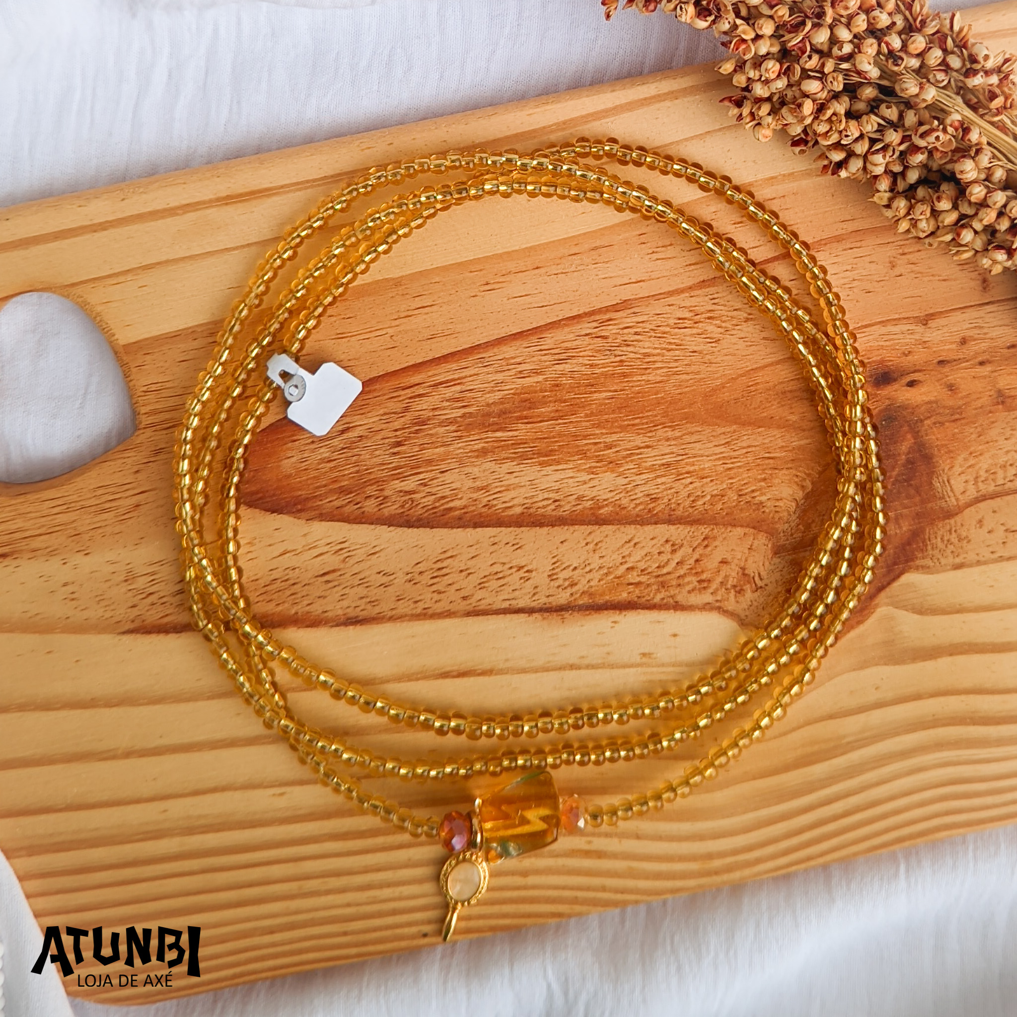 Fio de contas / Guia confeccionada em miçangas Jablonex (importada), firma em murano e pingente metálico.