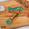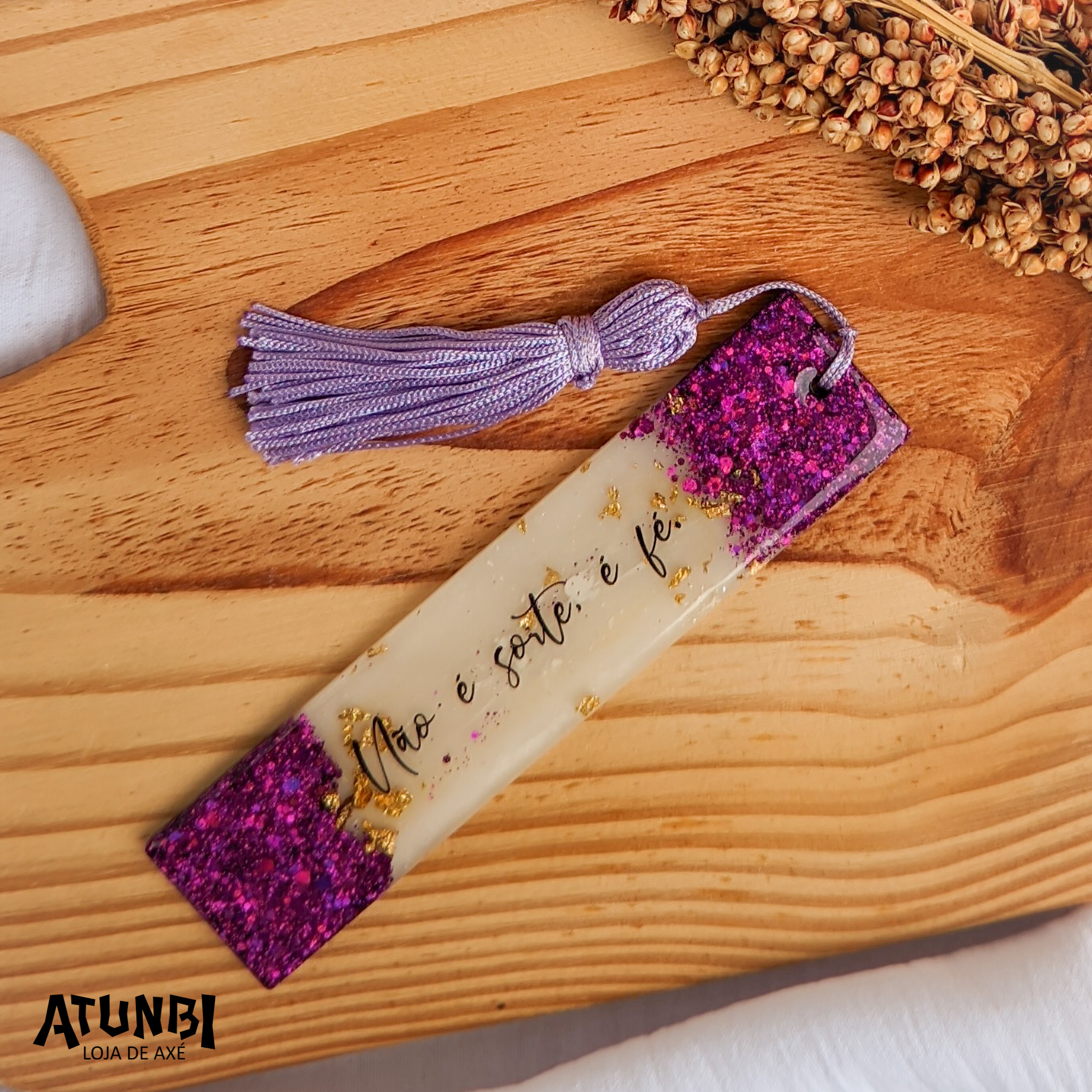 Marca página de resina personalização em glitter e branco, acabamento com tassel.