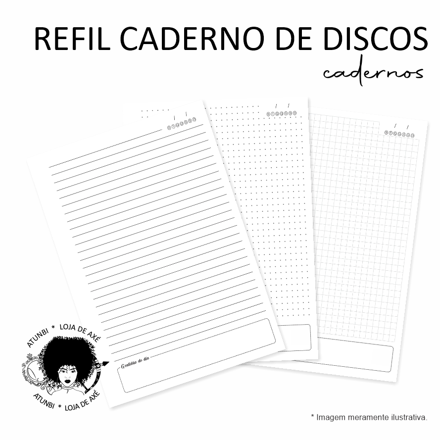 Refil caderno, impresso em papel offset 90g, furação compatível com sistema de discos.