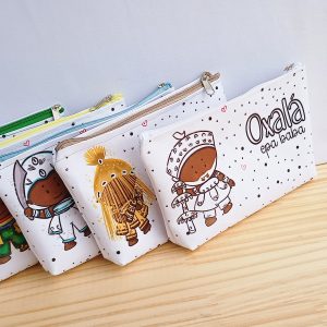 Necessarie confeccionada em nylon 600 dublado com microfibra, estampa sublimada, fechamento em zíper.