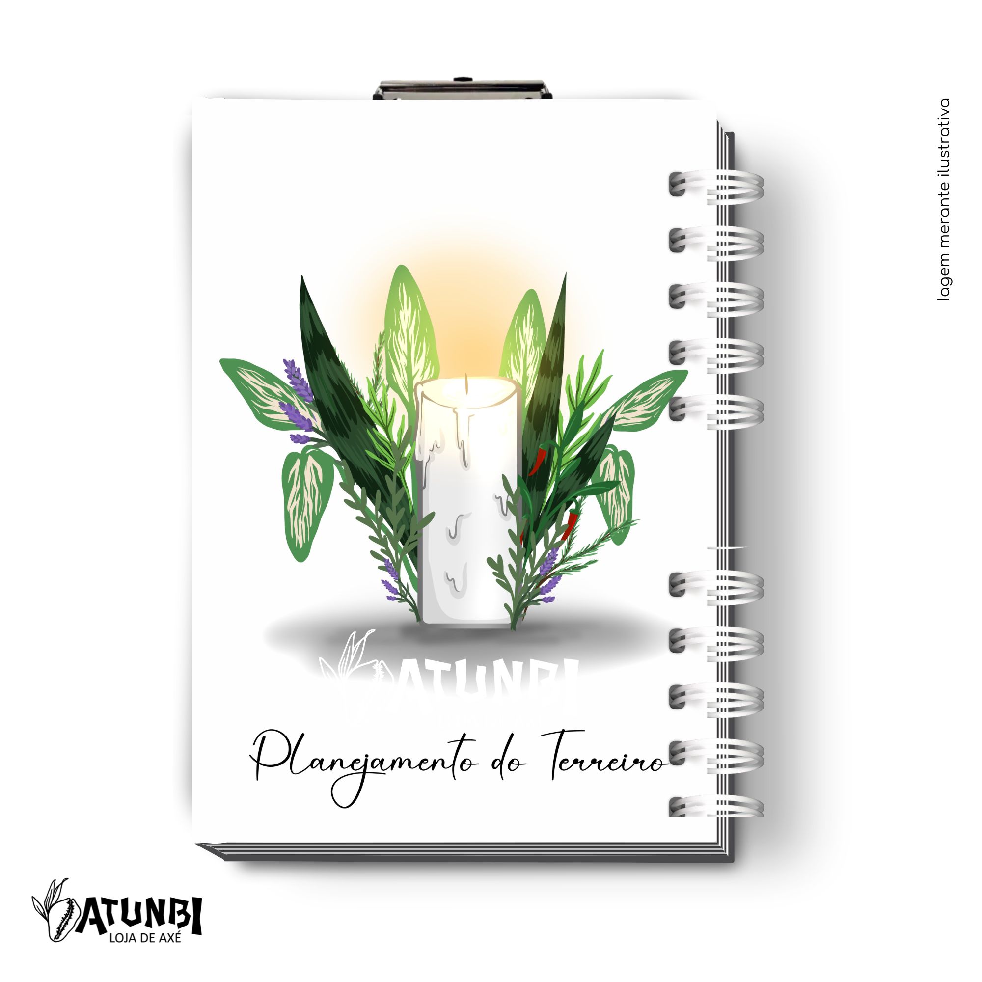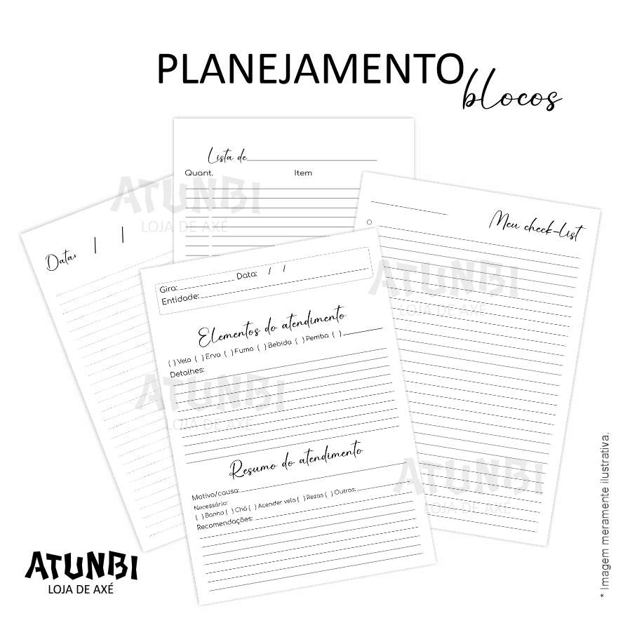 Planejamento de terreiro personalizado, capa e contra-capa dura e laminada, encadernação wire-o, saco canguru plástico, garra metálica, divisórias em papel 150g, totalizando aproximadamente 276 páginas de 75g (138 folhas).
