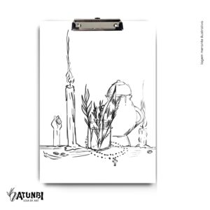 Prancheta personalizada, base dura e laminada, garra metálica, porta caneta, compatível com folhas A5 (21x15cm).