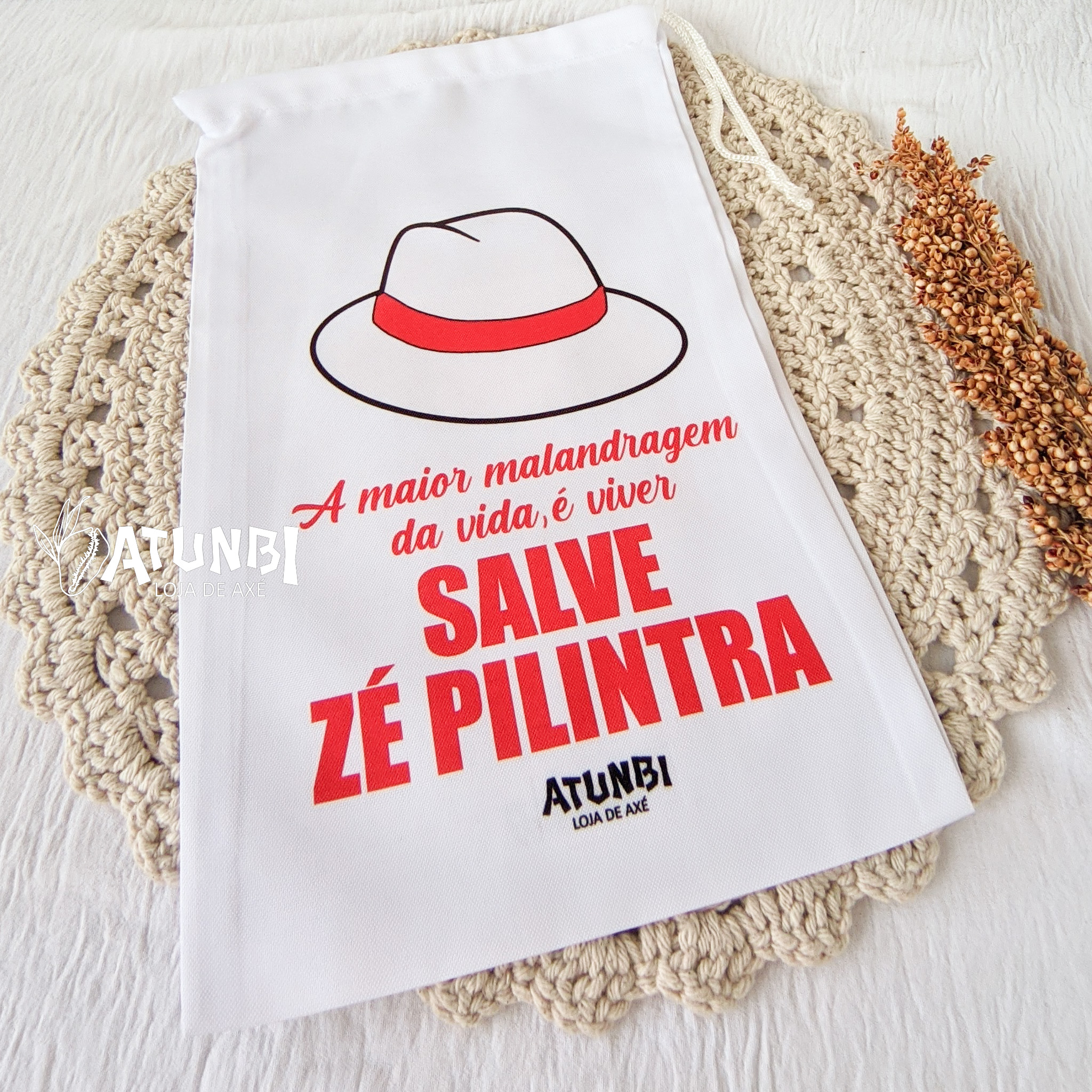 Saco porta guia / fio de contas, confeccionado em oxford na cor BRANCA, estampa frontal.