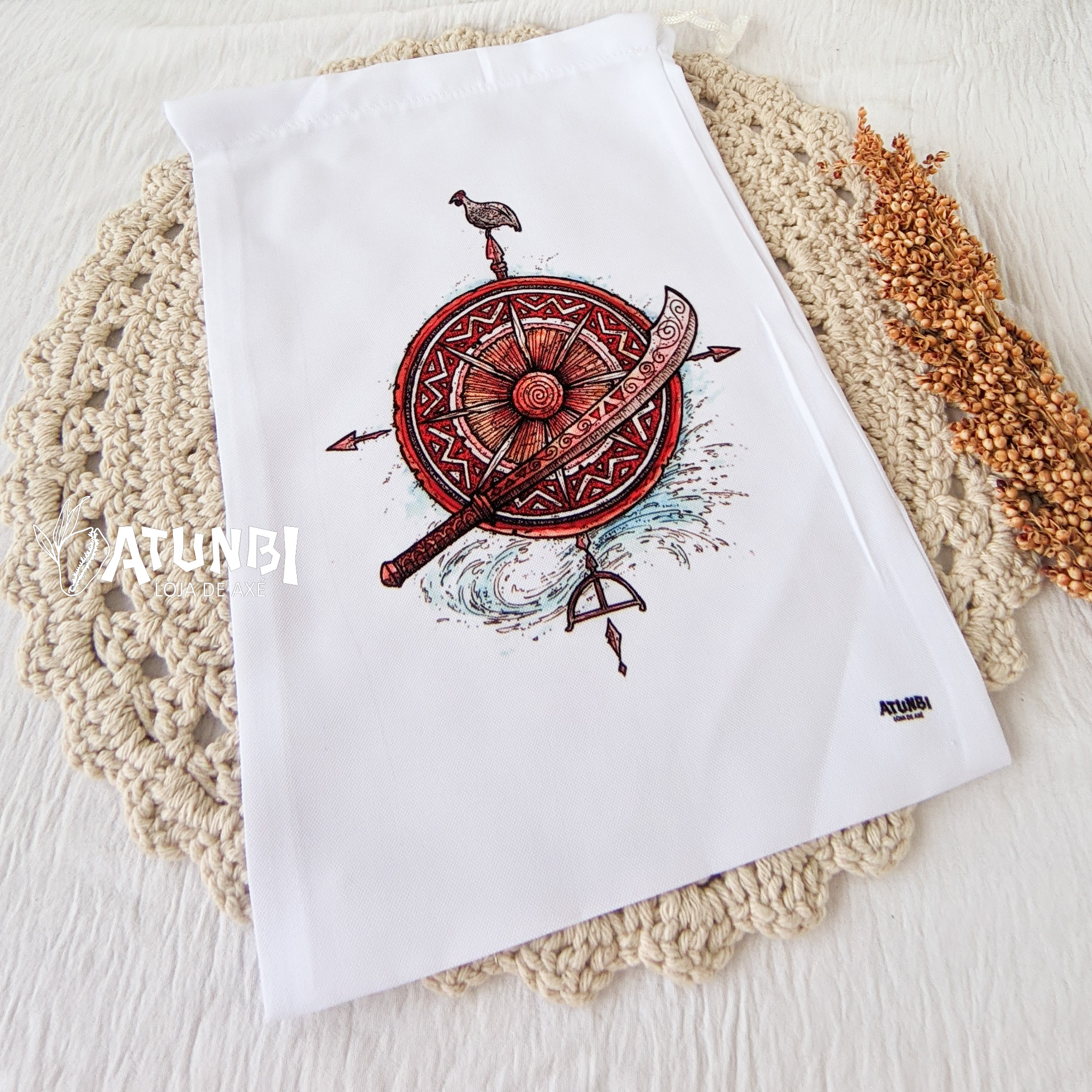 Saco porta guia / fio de contas, confeccionado em oxford na cor BRANCA, estampa frontal.
