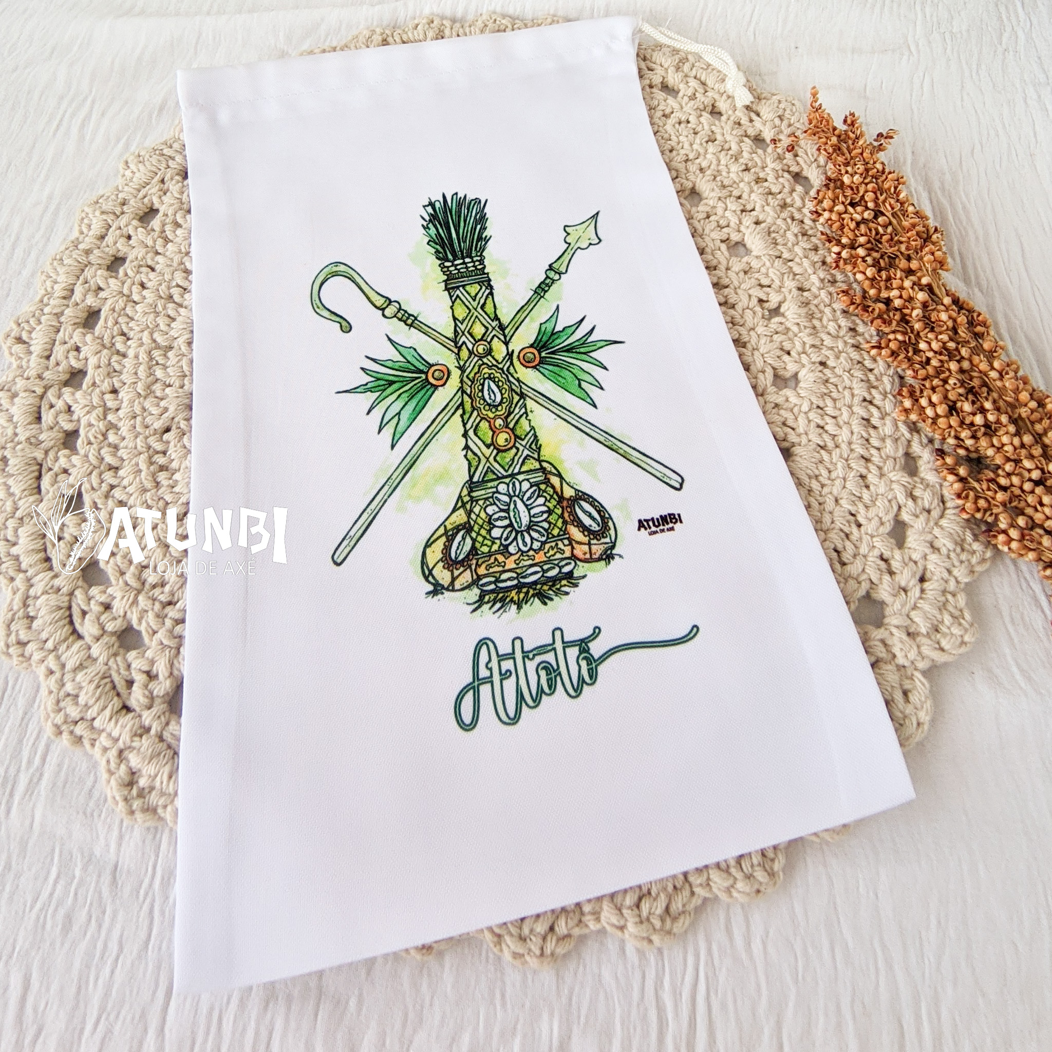 Saco porta guia / fio de contas, confeccionado em oxford na cor BRANCA, estampa frontal.