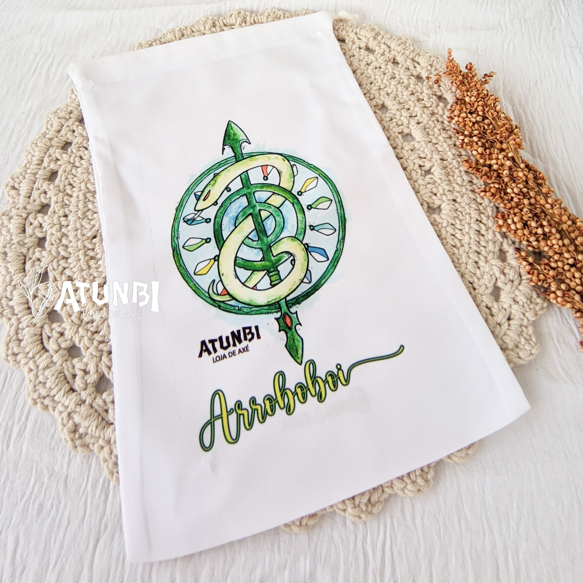 Saco porta guia / fio de contas, confeccionado em oxford na cor BRANCA, estampa frontal.