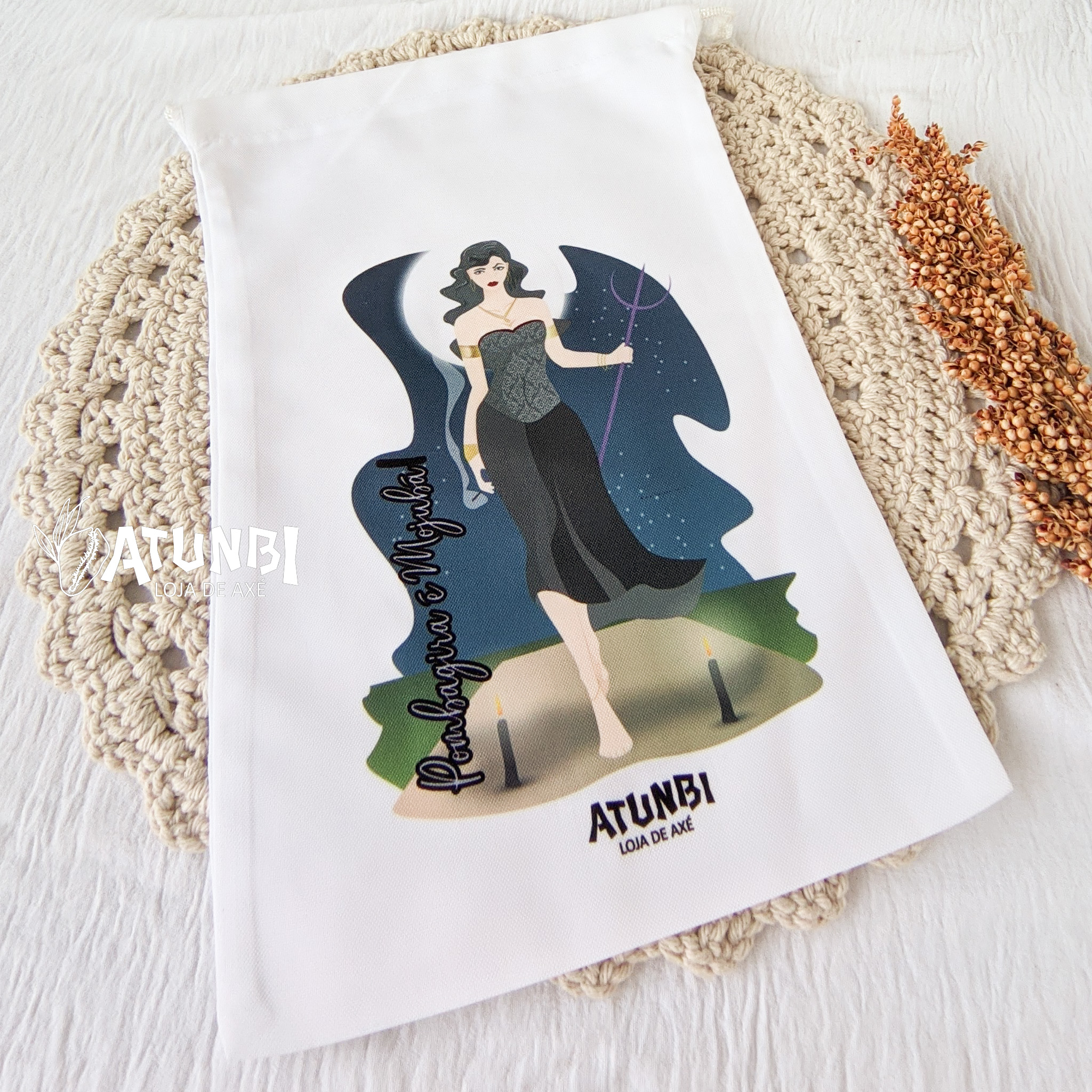 Saco porta guia / fio de contas, confeccionado em oxford na cor BRANCA, estampa frontal.