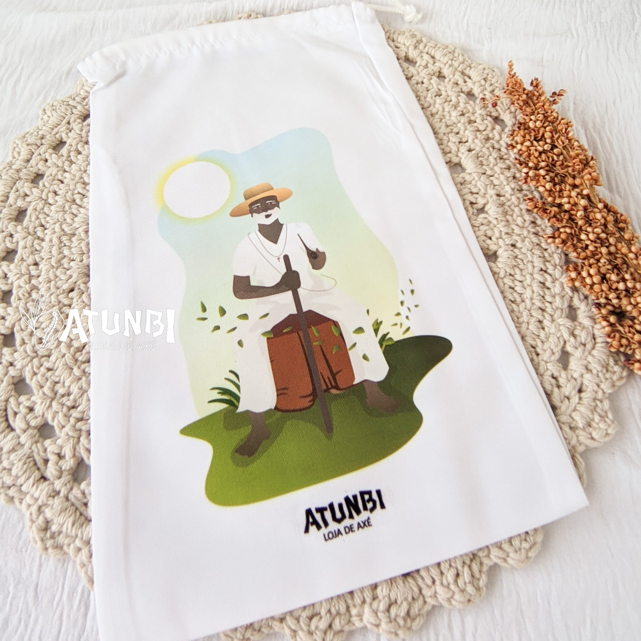 Saco porta guia / fio de contas, confeccionado em oxford na cor BRANCA, estampa frontal.