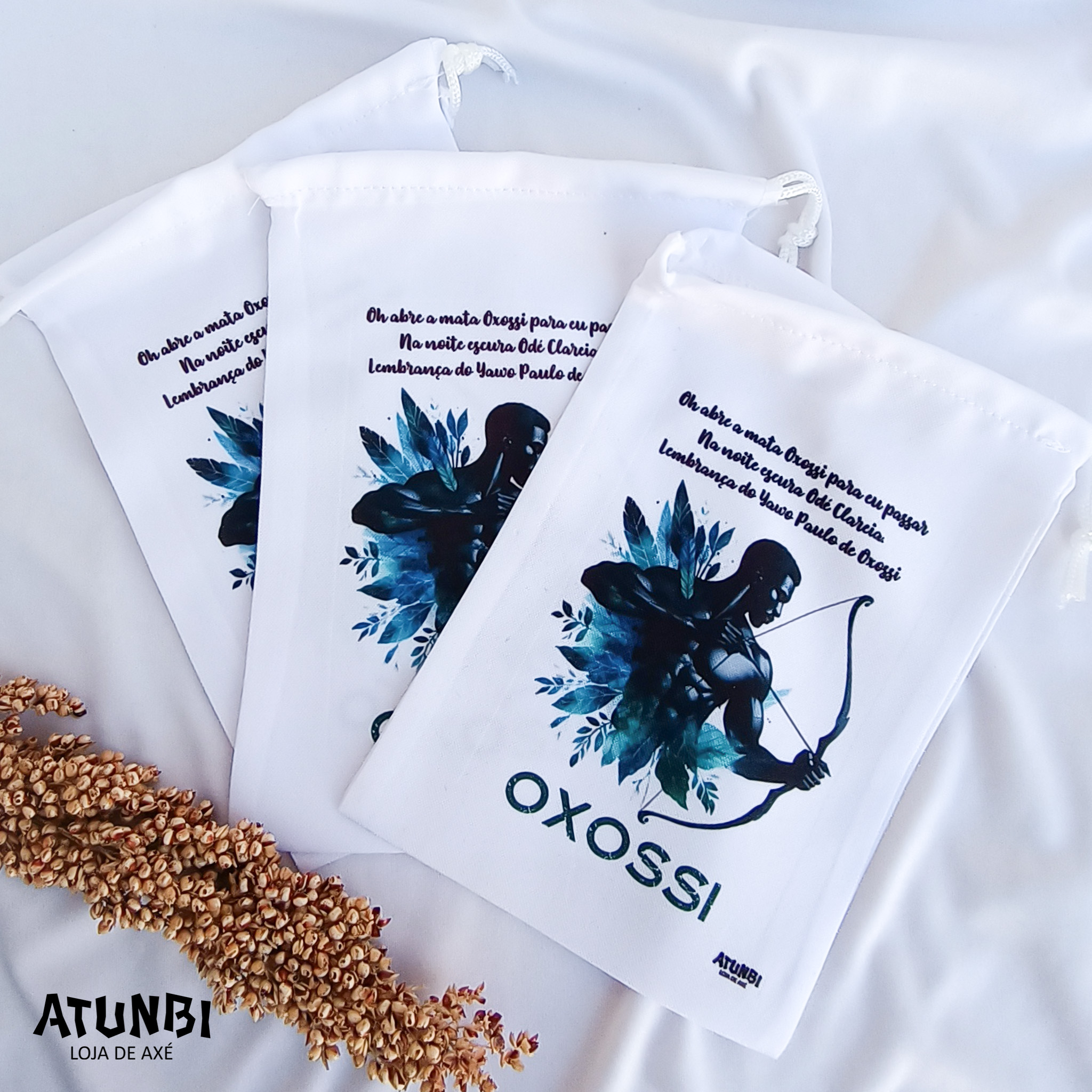 Saco porta guia / fio de contas, confeccionado em oxford na cor BRANCA, estampa frontal.